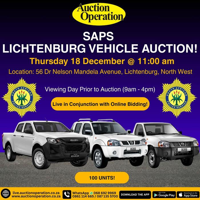 SAPS Vehicle Auction – Lichtenburg, North West!