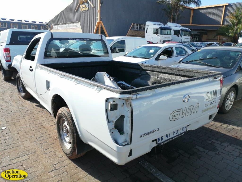 2022 KR47PGGP GWM STEED 5 2.2 MPI WORKHORSE P/U S/C (VIN #: LGWCA237NB666899) (ODO: 54932) (COLOUR: WHITE) (Paper Delay)(Accident Damaged- Engine Stripped- Missing Parts- No Battery- Side Mirror & Radio).