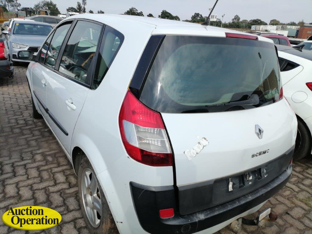 2005 CNP170NC RENAULT SCENIC II EXPRESSION 1.6 (VIN #: VF1JM1B0H33646971) (ODO: 0) (COLOUR: WHITE) (Paper Delay)(No Battery-Vehicle Stripped-Previously Repaired-Body Dents & Scratches).