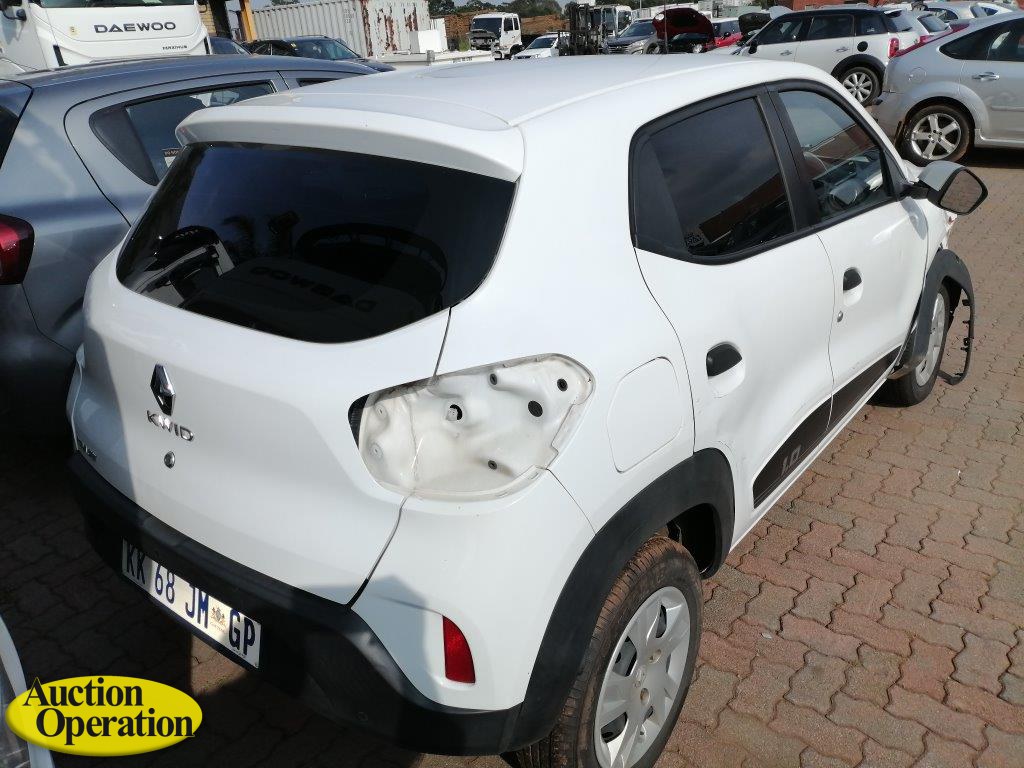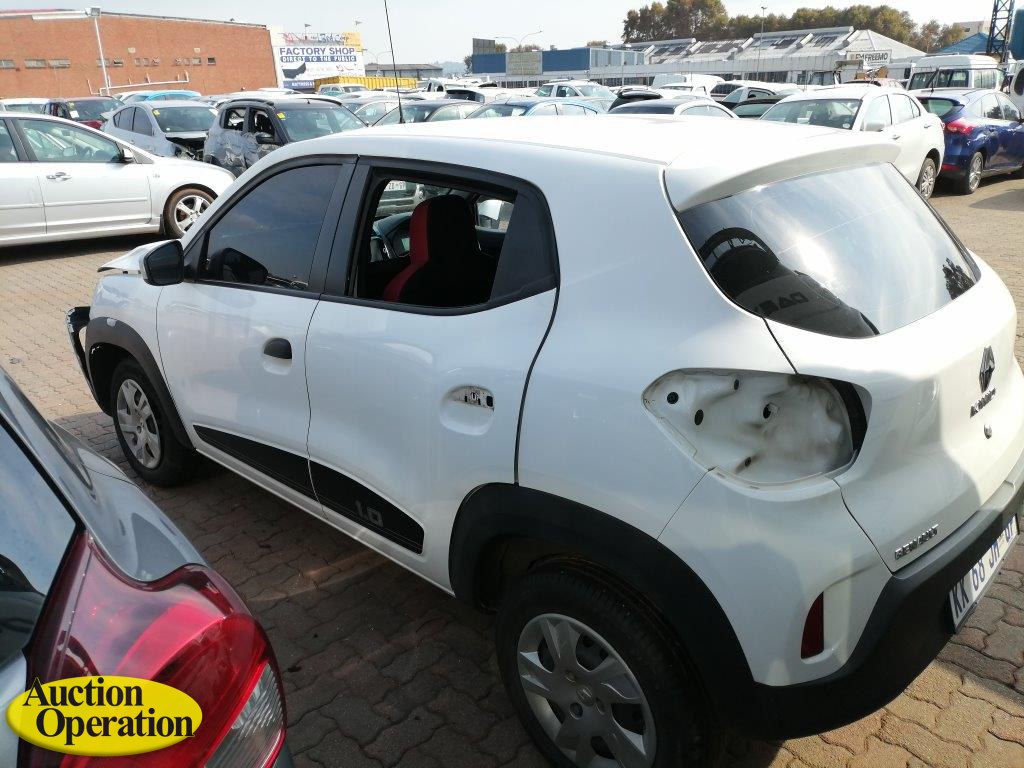 2022 KK68JMGP RENAULT KWID 1.0 DYNAMIQUE / ZEN 5DR (VIN #: MEEBBA00X00801138) (ODO: 72903) (COLOUR: WHITE) (Paper Delay)(Accident Damaged- Stripped- No Taillights & Keys).